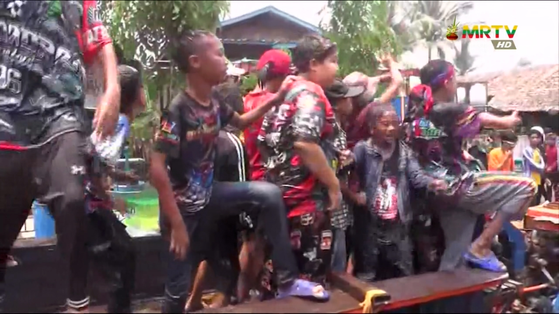 မွန်ပြည်နယ်၊ ချောင်းဆုံမြို့နယ်တွင် နှစ်သစ်ကူးသင်္ကြန်အကျနေ့၌ ရေကစားသူများဖြင့် စည်ကားလျက်ရှိ စနေနေ့, ဧပြီလ 15, 2023