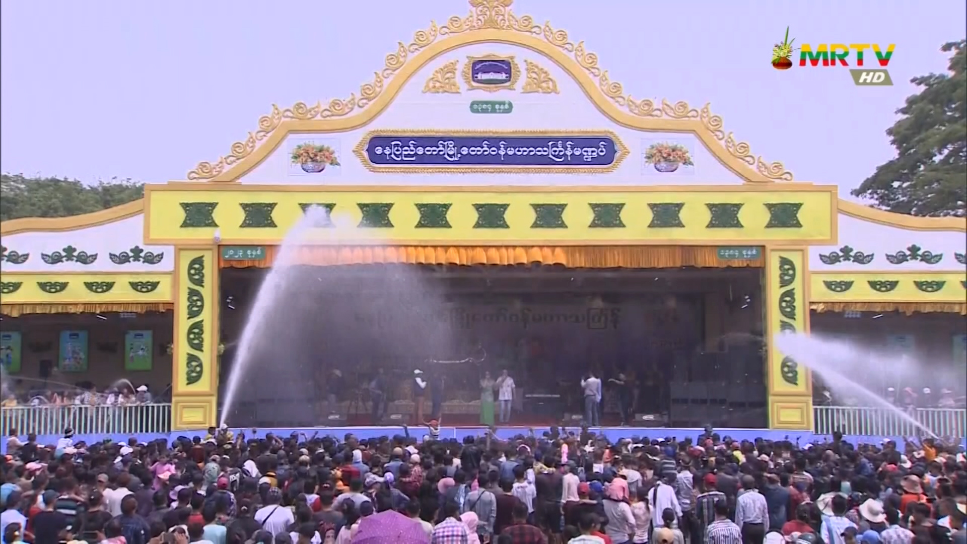 မြန်မာ့ရိုးရာယဉ်ကျေးမှု မဟာသင်္ကြန်အတက်နေ့တွင် နေပြည်တော်မြို့တော်ဝန် မဟာသင်္ကြန်မဏ္ဍပ်နှင့် လမ်းလျှောက်သင်္ကြန်တို့၌ ရေကစားလည်ပတ်ကြသူများဖြင့် စည်ကား တနင်္ဂနွေနေ့, ဧပြီလ 16, 2023
