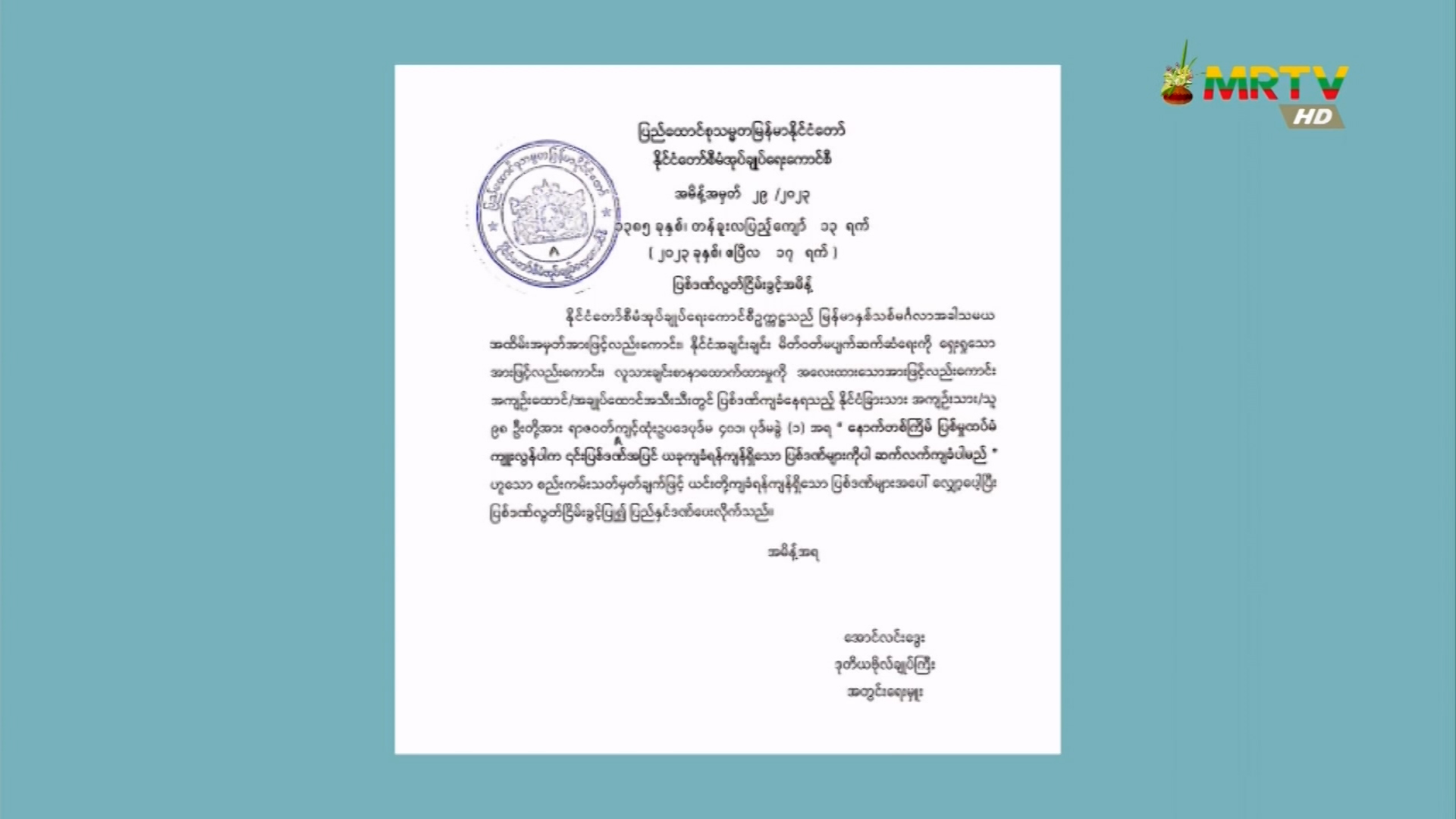 နိုင်ငံတော်စီမံအုပ်ချုပ်ရေးကောင်စီမှ အမိန့်အမှတ် (၂၉/၂၀၂၃) ကို ယနေ့ရက်စွဲဖြင့် ထုတ်ပြန် နိုင်ငံတော်စီမံအုပ်ချုပ်ရေးကောင်စီမှ အမိန့်အမှတ် (၂၉/၂၀၂၃) ကို ယနေ့ရက်စွဲဖြင့် ထုတ်ပြန် (နိုင်ငံခြားသား အကျဉ်းသား/အကျဉ်းသူ (၉၈) ဦးအား ယင်းတို့ကျခံရန် ကျန်ရှိသော ပြစ်ဒဏ်များအပေါ် လျှော့ပေါ့၍ ပြစ်ဒဏ်လွတ်ငြိမ်းခွင့်ပြု၍ ပြည်နှင်ဒဏ်ပေးလိုက်ခြင်း) တနင်္လာနေ့, ဧပြီလ 17, 2023