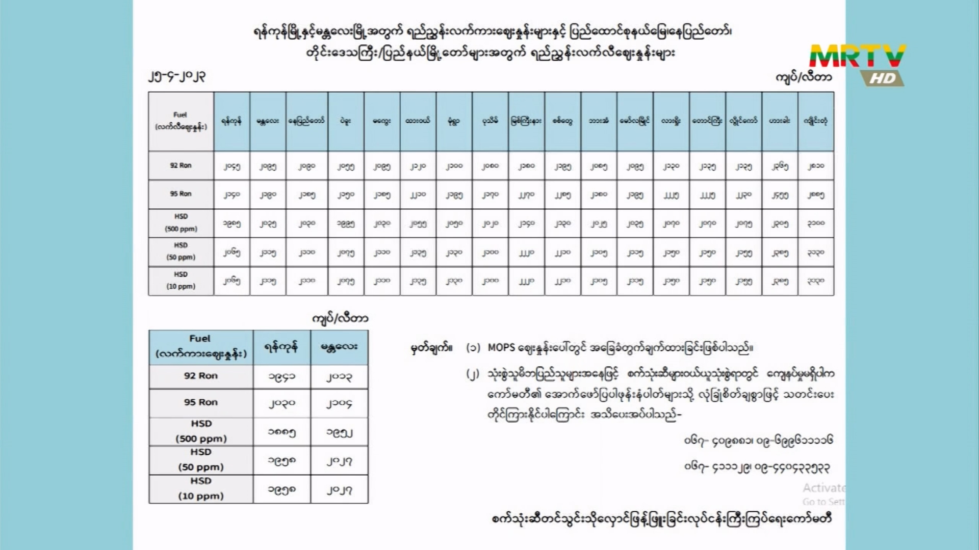 စက်သုံးဆီတင်သွင်း/သိုလှောင်/ဖြန့်ဖြူးခြင်းလုပ်ငန်းကြီးကြပ်ရေးကော်မတီမှ တိုင်းဒေသကြီးနှင့် ပြည်နယ်အလိုက် စက်သုံးဆီ ရည်ညွှန်းဈေးနှုန်းများအား ဧပြီလ ၂၅ ရက်နေ့တွင် ထုတ်ပြန်ကြေညာ အင်္ဂါနေ့, ဧပြီလ 25, 2023