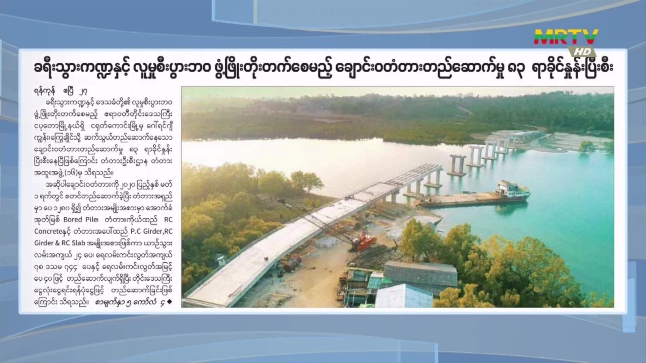 ခရီးသွားကဏ္ဍနှင့် လူမှုစီးပွားဘဝ ဖွံ့ဖြိုးတိုးတက်စေမည့် ချောင်းဝတံတားတည်ဆောက်မှု ၈၃ ရာခိုင်နှုန်းပြီးစီး သောကြာနေ့, ဧပြီလ 28, 2023