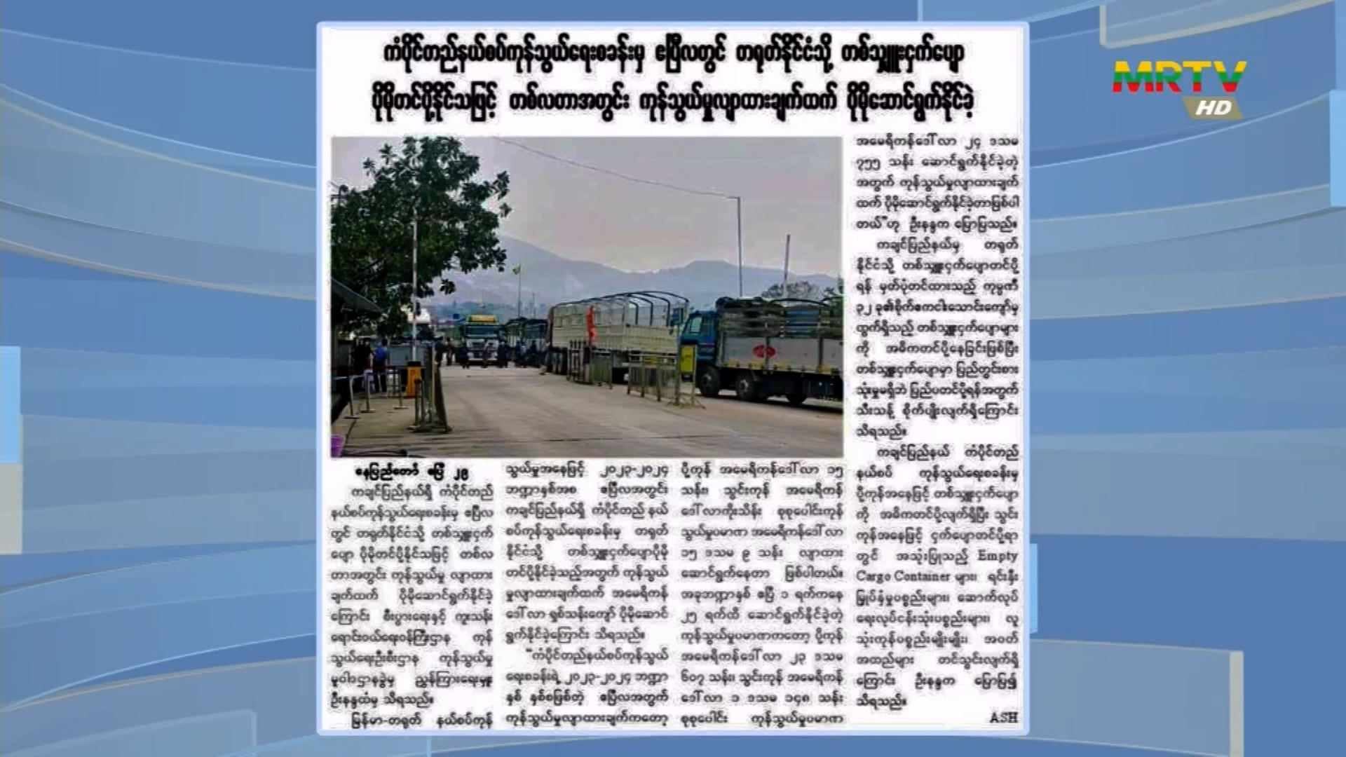 ကံပိုင်တည်နယ်စပ်ကုန်သွယ်ရေးစခန်းမှ ဧပြီလတွင် တရုတ်နိုင်ငံသို့ တစ်သျှူးငှက်ပျော ပိုမိုတင်ပို့နိုင်သဖြင့် တစ်လတာအတွင်း ကုန်သွယ်မှုလျာထားချက်ထက် ပိုမို ဆောင်ရွက်နိုင်ခဲ့ တနင်္လာနေ့, မေလ 01, 2023