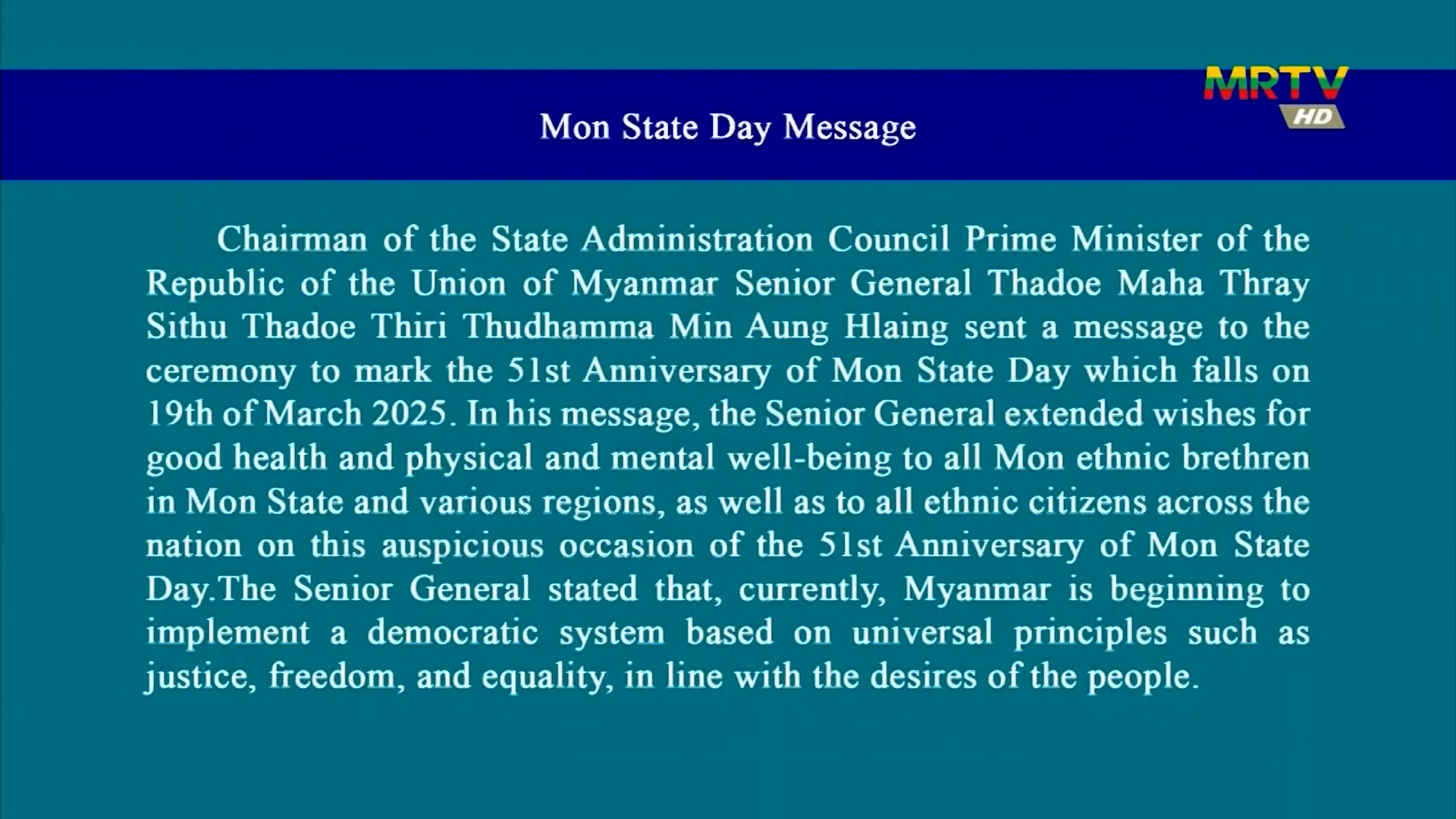 AA အကြမ်းဖက်သောင်းကျန်းသူများ၏ မူးယစ်ဆေးဝါး သယ်ယူပို့ဆောင်၊ ရောင်းချနေသော လုပ်ငန်းများနှင့်ပတ်သက်၍ အမျိုးသားကာကွယ်ရေးနှင့် လုံခြုံရေးကောင်စီ သတင်းထုတ်ပြန်ရေး အဖွဲ့ခေါင်းဆောင် ဗိုလ်ချုပ်ဇော်မင်းထွန်း၏ ပြောကြားချက်
