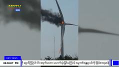 တောင်ကိုရီးယား Yeongdeok-gun ရှိ လေတာဘိုင်တစ်ခု မီးလောင်မှုဖြစ်ပွားခဲ့ရာ အမြင့်မီတာ (၈၀)ရှိ လေတာဘိုင်ဒလက်အတွင…