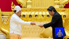 ရွေးကောက်တင်မြှောက်ခြင်းခံရသောသမ္မတ နိုင်ငံတော်လုံခြုံရေးနှင့် အေးချမ်းသာယာရေးကော်မရှင်ဥက္ကဋ္ဌ ဗိုလ်ချုပ်မှူးကြီး မင်းအောင်လှိုင်၏ ဂုဏ်ပြုအထိမ်းအမှတ်လက်ဆောင် ချီးမြှင့်ခြင်းအခမ်းအနား ကျင်းပ